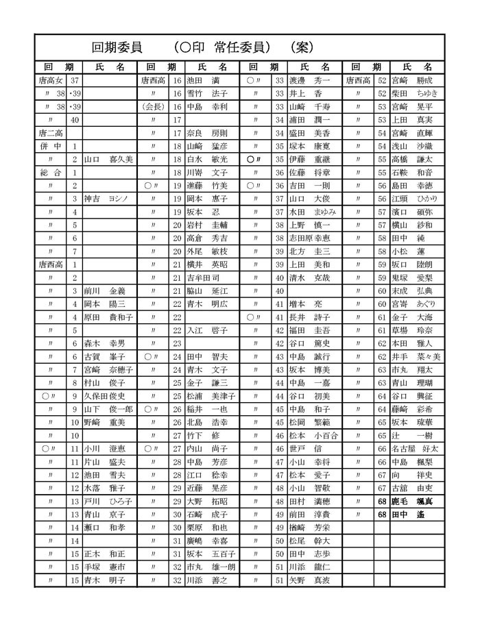 【0の回期】 唐津高等女学校・・・40の回期、唐津西高等学校・・・10、20、30、40、50の回期